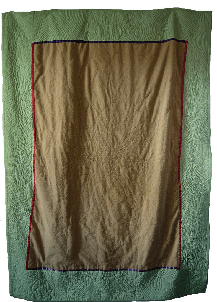 Dress with batting, front sewn to back, quilted. 50″x 16″.Collection of the artist.