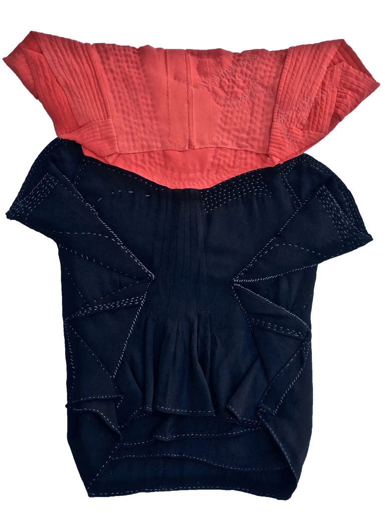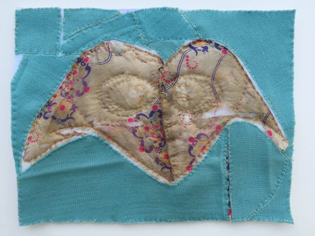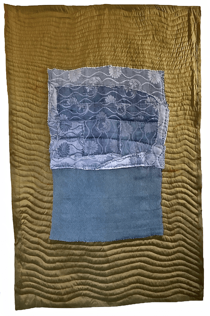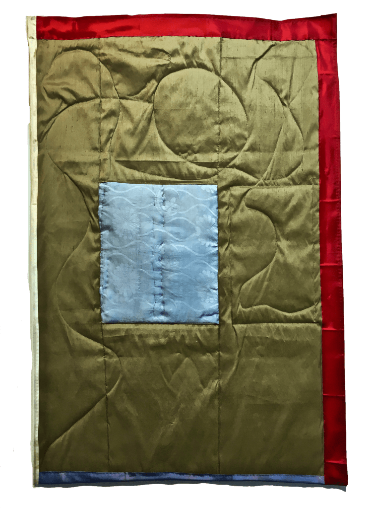 Quilted and embroidered silk. 37″x 23 1/2″. Collection of the artist.