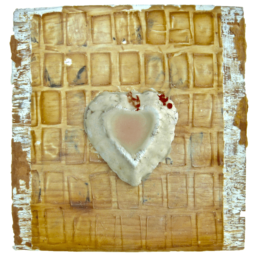 Plaster and wax on wood,. 10″x 9 1/2″x 1 1/2″. Collection of the artist Collection of the artist.