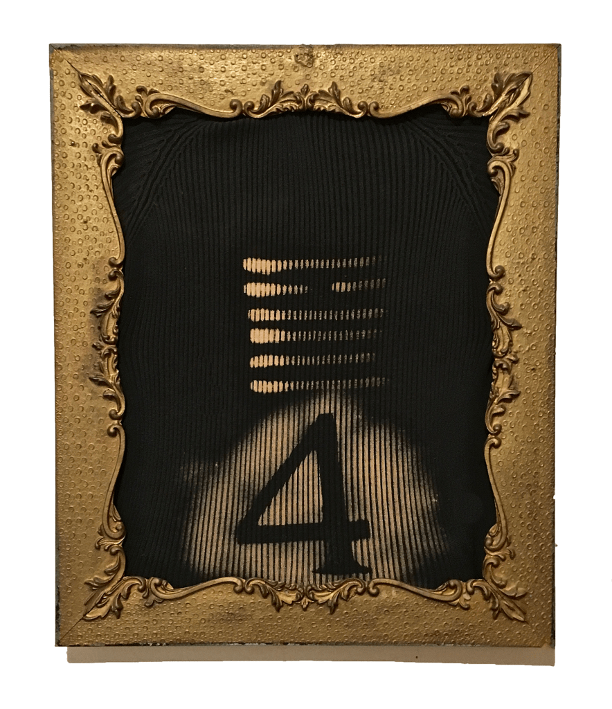 Stenciled fabric. 25”x 20”. Collection of the artist.
