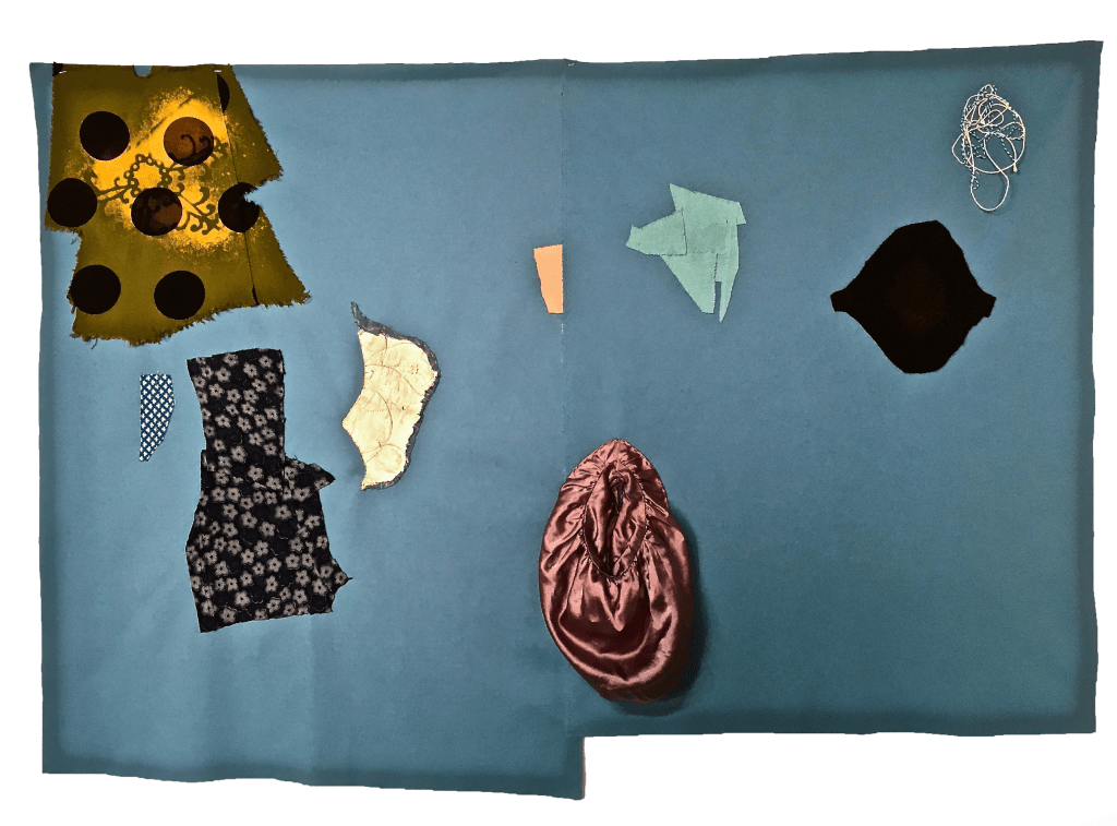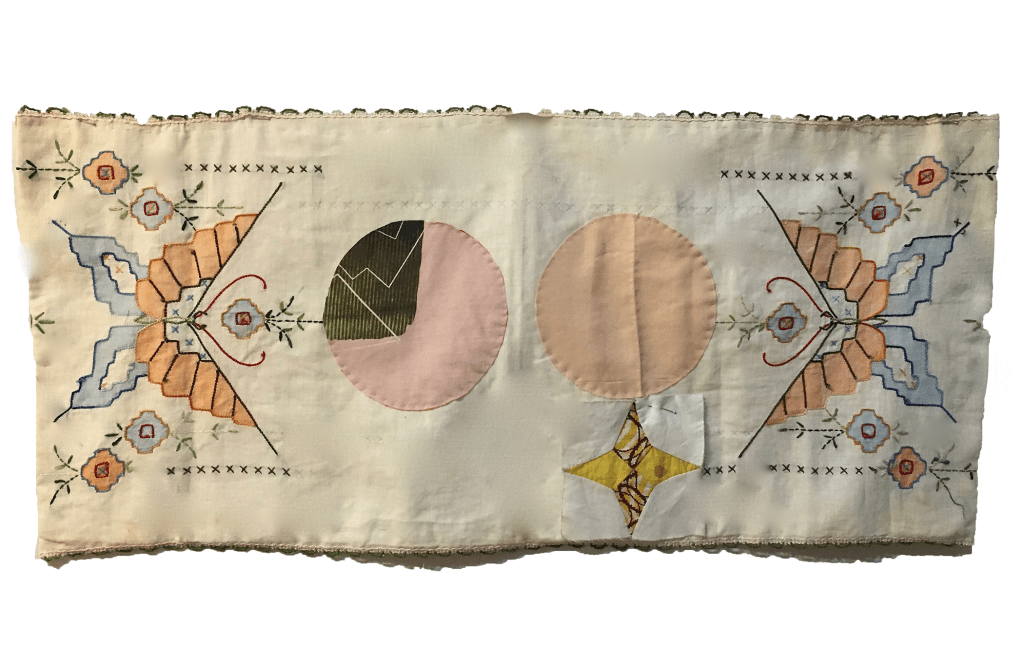 Bleached dress applique. 40”x 31 1/2”. Collection of the artist.