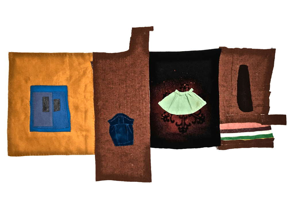 Hand sewn fabric appliqué. 60”x 40”. Collection of the artist.
