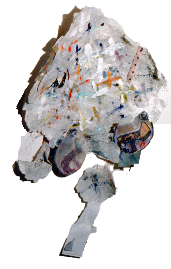 Paper, paper pulp, etching, paint. 24″x 14″ approx. Non-extant