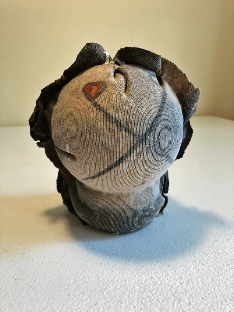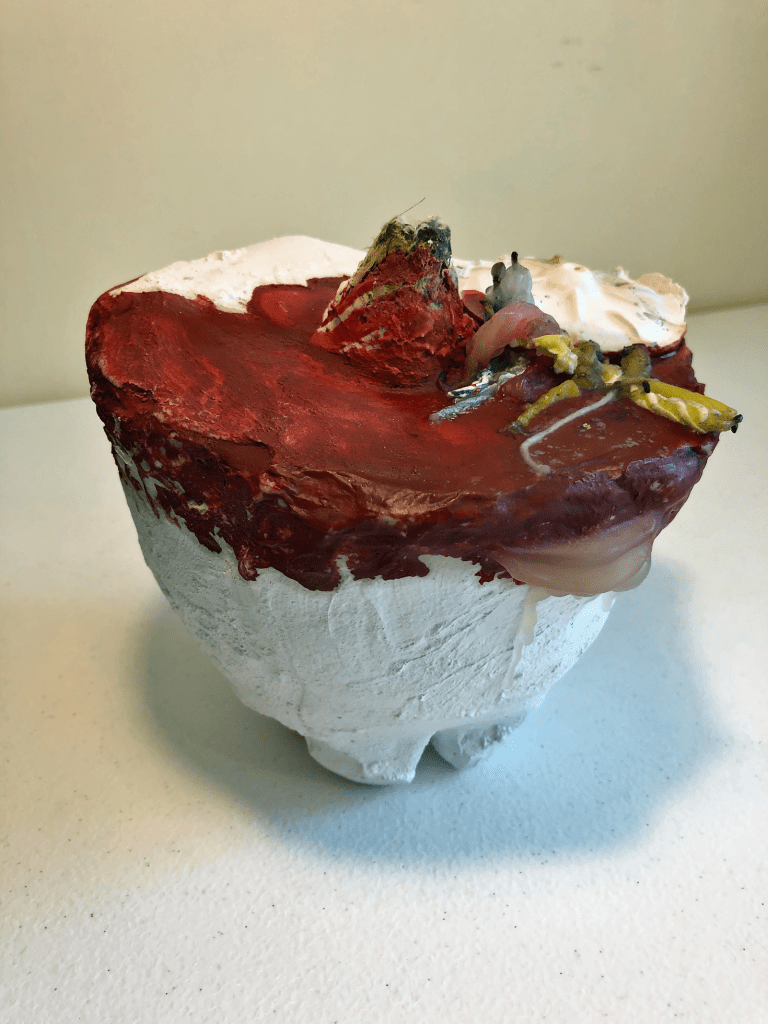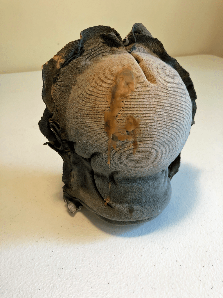 Plaster, fabric, plastic. 11”x 10”x 7 1/2”. Collection of the artist.