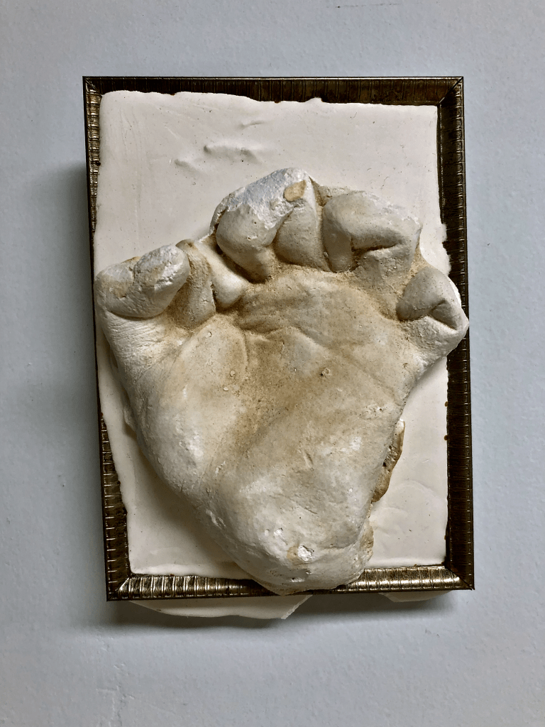 Plaster, clay residue. 7 3/4x 5 1/4”x 2”. Collection of the artist.