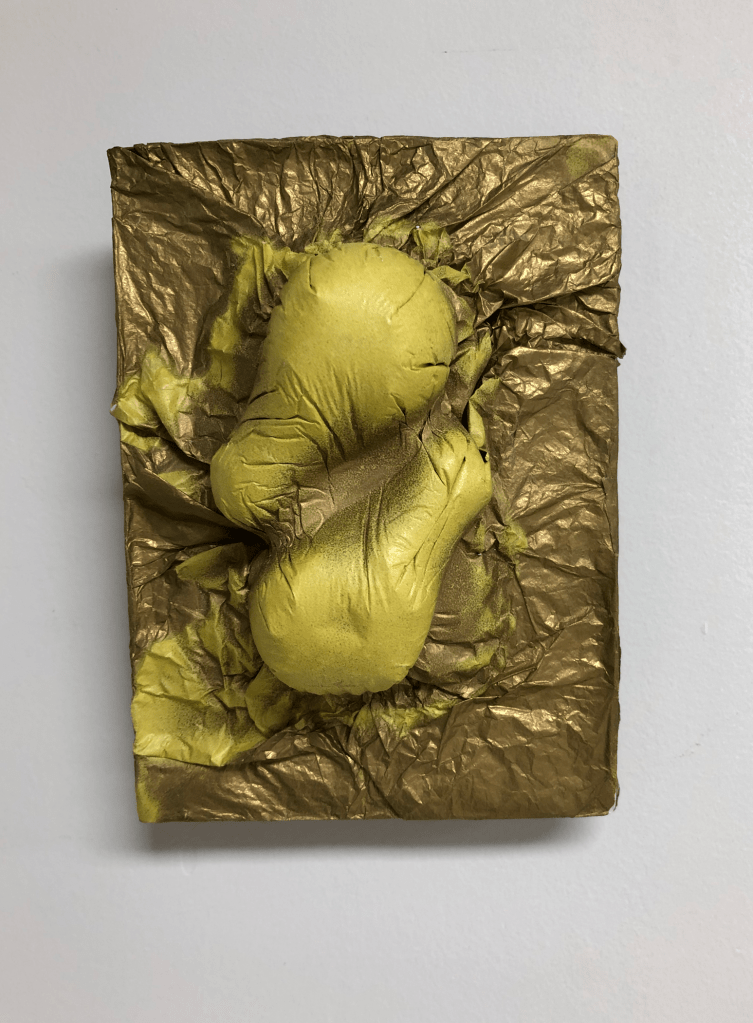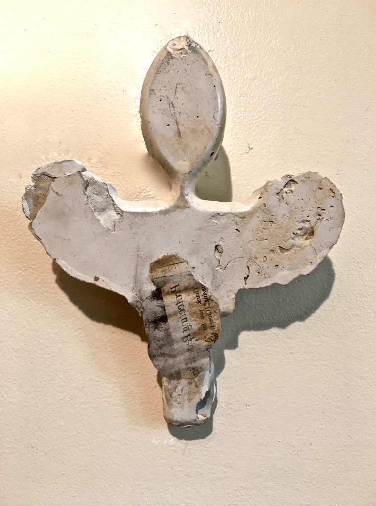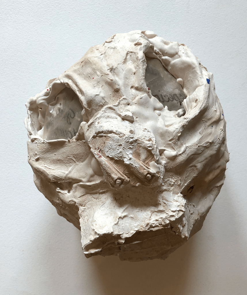 Plaster and paper. 8 1/2″x 6 1/4″x 3″. Collection of the artist.