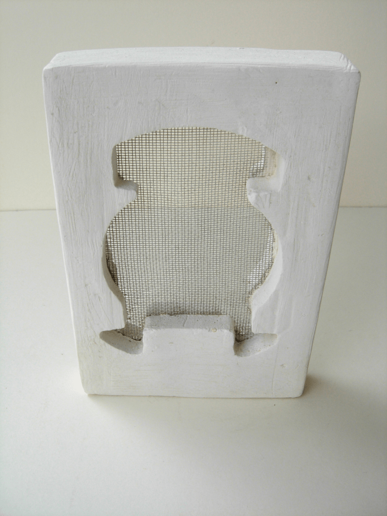 .0374 (screen figure). 1982. Plaster, screen. 9″x 6″x 1 1/2″. Collection of the artist.