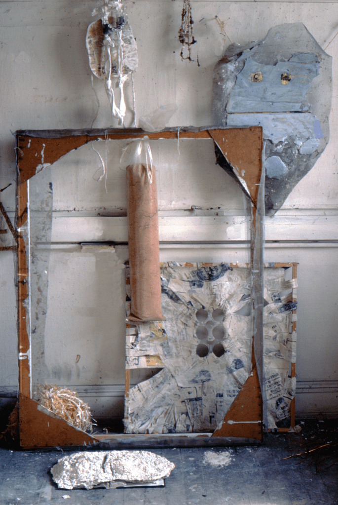 The works in this exhibition, the earliest from 1978 (.1315 Bread), the most recent made this year (.1356 untitled), stem from a lifetime of carefully noting the possibilities of our everyday material surroundings. Consistent across the work is a conscious and emphatic thriftiness and a grittiness of both content and surface that rejects the common obsession with sleek, shiny, and new in our consumer culture; instead, Packard rejoices in materials that show permeability and wear, and attest to the ephemerality of our lives.