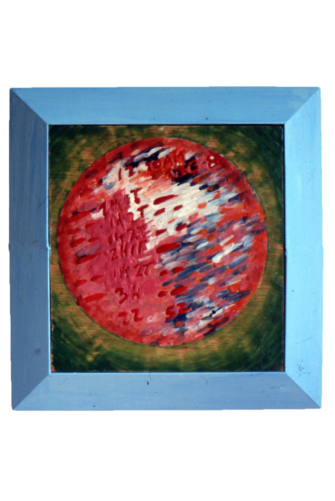 .0024 Advent 1985. wax on wood panel. 15 3/4″x 13 1/2″ .0395 Waffle Figure 1982. painted plaster. 14″x 7 1/2″x 5″