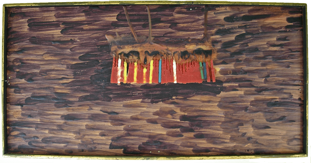 Wax on wood. 24″x 24″. Collection of Susan Yashar.
