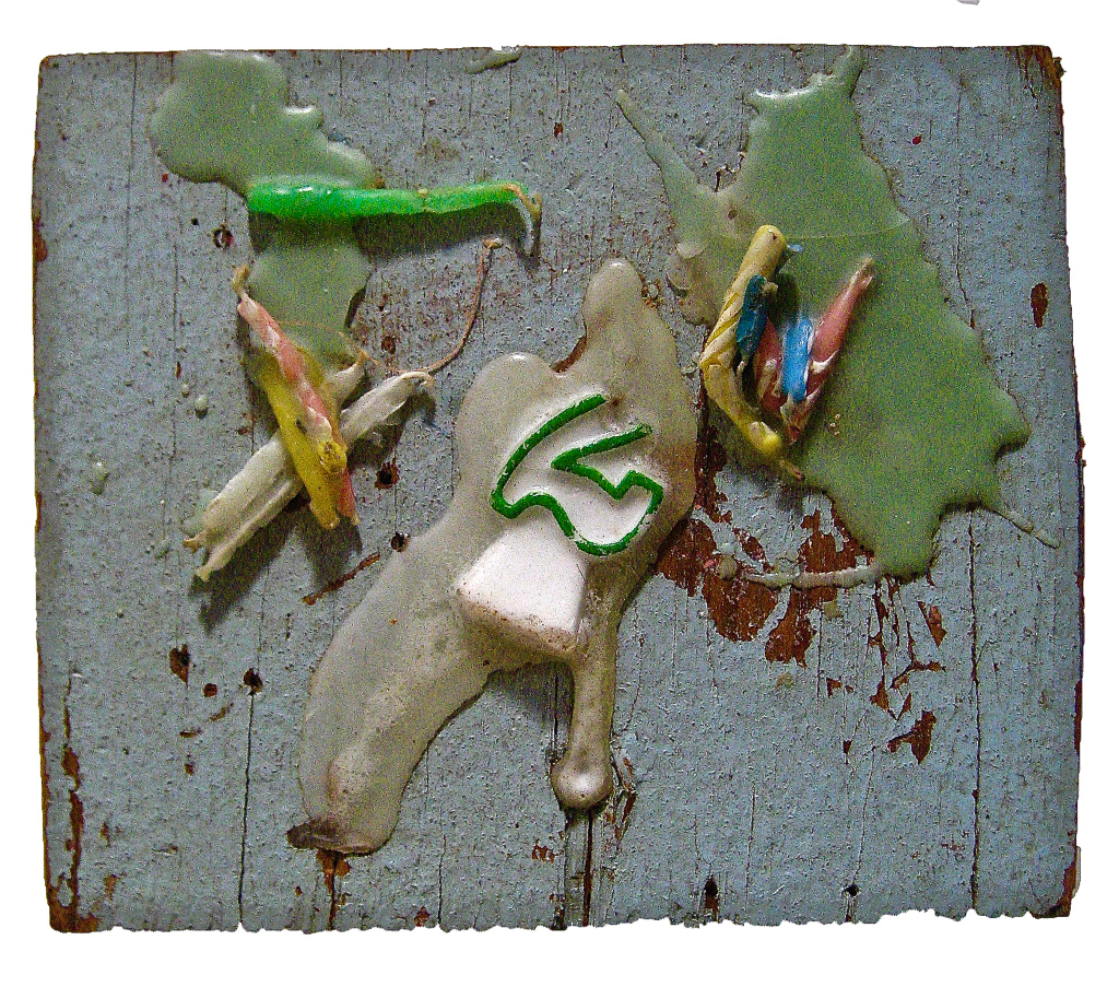 Wax, paper on wood, 22″x 18″. Collection of the artist.